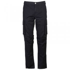Pantalone uomo multitasche elasticizzato 98% cotone 2% elastan, tessuto prelavato. Due tasche anteriori, due laterali e due posteriori con bottoni automatici coperti ginocchiera preformata.