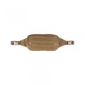 Realizzato in trevira verde, due scomparti con cerniera, sistema a molle per aggancio ulteriori tasche; all'interno elastici e scomparto in rete.