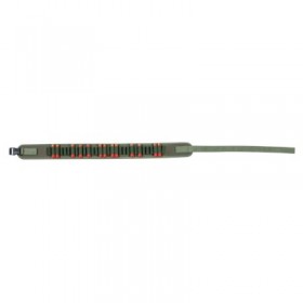 Fondo in polimero semirigido accoppiato a caldo con tela in cotone di colore verde militare. Celle in elastico ad alta tenacità alto cm 3,5, che anche dopo lungo tempo di utilizzo non avrà cedimenti e manterrà le munizioni ben stabili all'interno della cella. Porta fibbia e manico alto mm 30 in polietere, fibbia a sgancio rapido in resistentissimo abs, filo di cucitura in poliestere ultra resistente.